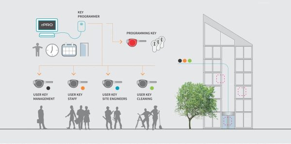 Systém ePRO zvládá funkce pro generální klíč i časová okna pro každou vložku, a tím řídit přístupy včetně zpětného načtení data použití vložky / stupu daným klíčem s jedinečným ID.