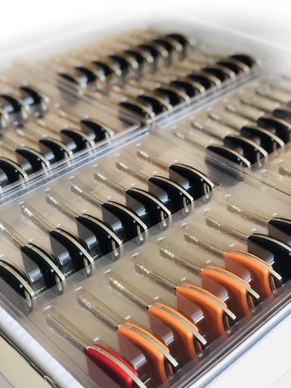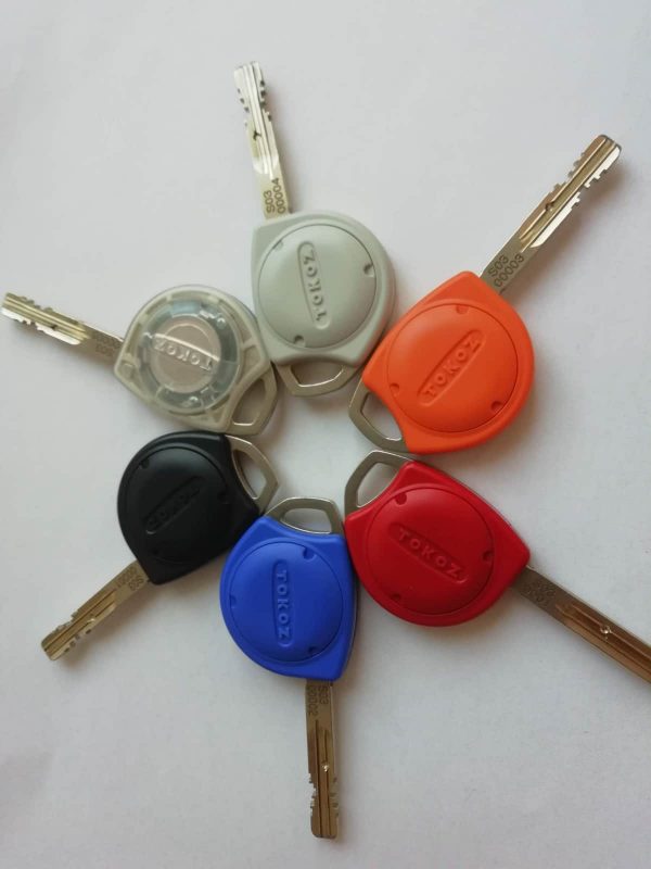 Mechanickou část mám na všech klíčích stejnou a práva si nastavuji pomocí TABULKY EXCEL. Modré klíče mám nastavené jako generální klíč, který odemkne každou vložku nebo visací zámek. Černé a oranžové klíče jsme si v TABULCE nastavil pro rodiče a kolegy, kteří nechodí do celého domu, ale každý uživatel klíče má svoje oprávnění.
